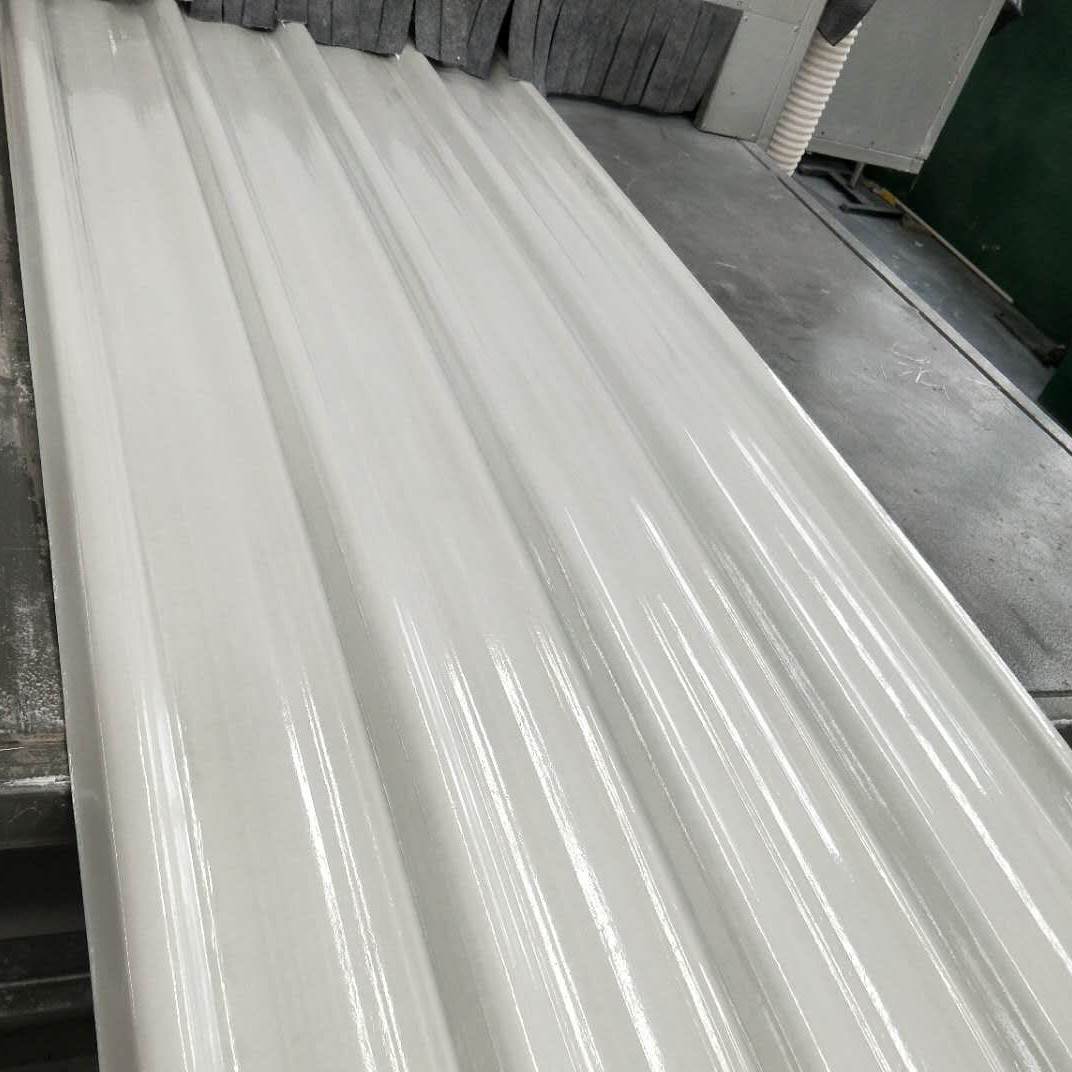 采光瓦要由高性能上膜、強化聚脂和玻璃纖維組成,其中上膜要起到很好的抗紫外線抗靜電的作用,抗紫外線是為了保護FRP采光板的聚酯不發黃老化,過早失透光特性